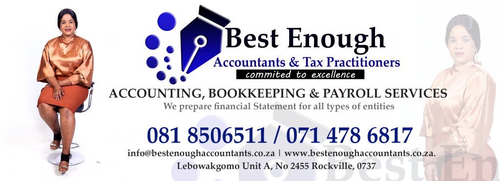 Best Enough Accountants And Tax Practitioners (Pty) Ltd is 100% black women owned business offering excellent quality service to the community and individuals in South African and abroad.